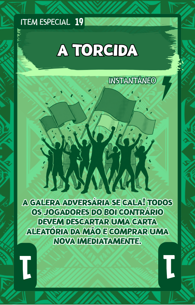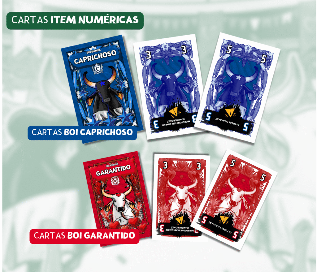 Quando as cartas são reveladas, as de Item Especial quebram a fila, sendo resolvidas antes de todas as outras. Elas têm o poder de alterar drasticamente as regras do turno, mas vêm com uma restrição genial: seus poderes só podem ser ativados se o seu boi estiver “se apresentando” naquele turno. Se for a vez do seu rival brilhar na arena, sua carta especial é praticamente inútil.